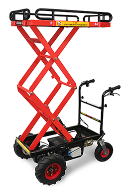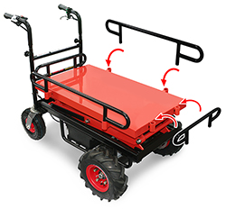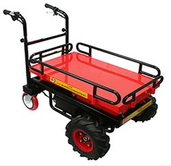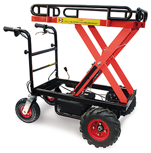 「載せる」「運ぶ」「降ろす」全部がラクラク。 重い荷物もスイスイ運べる電動運搬車にリフト機能搭載。 |