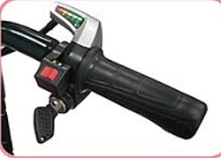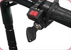 ●充電は家庭用コンセントで 重いバッテリーを取外さなくても本体下の充電口からご家庭のコンセントに直接つないで簡単充電。 ![]() ●電動/手動はレバー切換え クラッチレバーを手前に引けば電動駆動装置を切ることができ、手動でも楽々動かせます。 ![]() ●高さを変えられるハンドル ハンドルは、身長に合わせて高さを調節でき、内側に折り畳めるので収納スペースも節約できます。 ![]() ■セーフティー機能も充実 ●ディスクブレーキ&ストッパー ディスクブレーキを左右両前輪に搭載。ハンドルのブレーキには固定ができるストッパー付き。 ●リフトストッパー リフトが下がらないよう固定する為に、手動のストッパーもリフトの下(両サイド)に付いています。 ![]() ●鍵が付いているので安心 車やバイクのように、キーを差し込まないと起動が出来ないので、盗難防止に役立ちます。(3個付属) ![]() ■タイプ 整地、舗装地などの平坦地などでの使用をお奨めいたします。