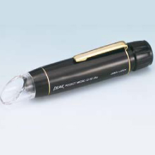 携帯に便利な万年筆型簡易顕微鏡、正立像により被検物を実体に近い状態で観察・測定できるようになりました。 |