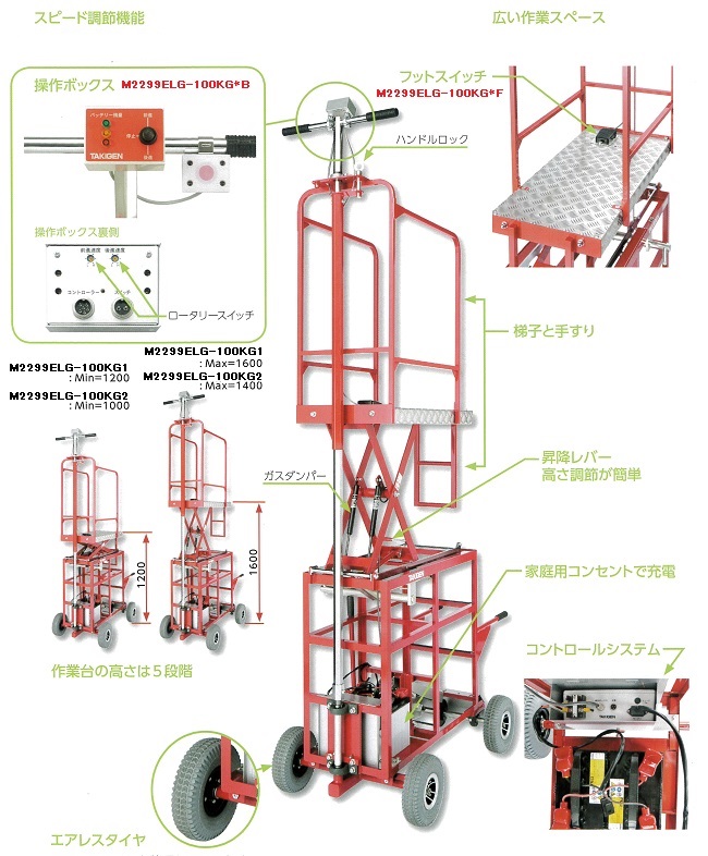 高所作業電動台車(ボタンスイッチ) 品番 M2299ELG-100KG1B 廃番 |