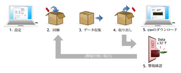 M2536LB-TLSは電池駆動のデータロガで遠隔地でデータを収集して内部メモリに記録します。 |