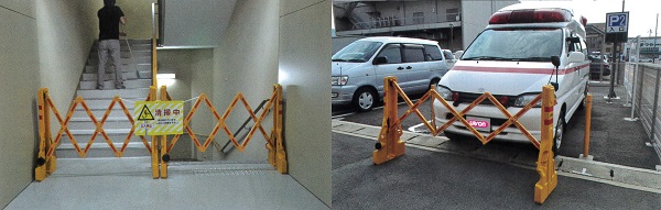 ■特長 ●視覚効果抜群 最大2200mm幅まで広げることが可能。作業中の進入をシャットアウト。 ![]() ●持ち運び便利な6kg 女性の方でもラクラク。持ちやすい取っ手付き。 ![]() ●ウエイト機能付き 簡単に倒れないよう、ウエイト代わりに水を入れることが出来ます。 ![]() ●様々なシチュエーションで活躍 階段、通路、EV、エスカレーターなど、使用できる場所は無数。 ![]() ■仕様