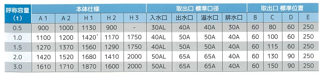 | ■参考図 ※1 標準仕様の0.5tには、電極カバー及び通気口は取付しておりません。 ※2 外梯子は0.5tのみオプション部品となります。 ※3 内梯子は全サイズ共オプション部品です。 ![]() ![]() ■共通仕様
