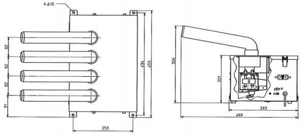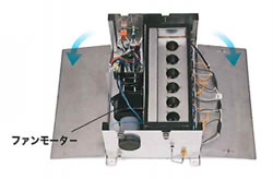 | ■すぐれたメンテナンス性 パネルを開くだけでメンテナンスが行えるようになりました! ●両側面 オシレーター及びファンモーターの交換・メンテナンス時に両側面のパネルを開いていただきますと、非常に効率的に作業が行えます。 ![]() ●底面 バイブレーターの交換・メンテナンス時に底面のパネルを開いていただきますと、非常に効率的に作業が行えます。 ![]() ■外観寸法 ![]() ■仕様