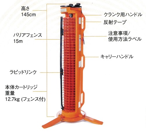 ■特長 ●何度も使えるので環境にやさしい ●持ち運びも便利:本体12.7kgと軽量 ●簡単設置・簡単撤収、1人で数分でOK ●現場の安全のために:うっかり侵入を防止 ![]() ![]() ■使用用途 ![]() ■本体標準仕様 ![]() ■標準セット内容 ![]() |