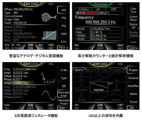 高い信号忠実度、低いノイズ・フロア、任意波形長さを必要とする低周波テスト・アプリケーションに最適です。 |