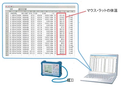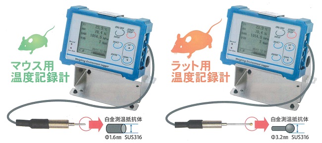マウス・ラットの動物体温の記録に使用可能なデータロガーです。 ※スタンドは別売りです。 |