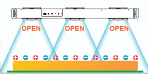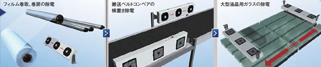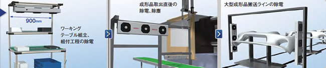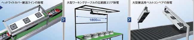 バタフライルーバー採用! ワイド&スポットの組み合わせで 多用途に除電! 用途: 樹脂成型、電子部品 製造/組立/検査 |