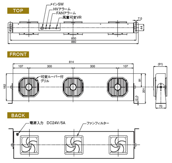 静電除去ファン(3連ファン) 品番 M326L-90V 価格 ¥141,000.- |