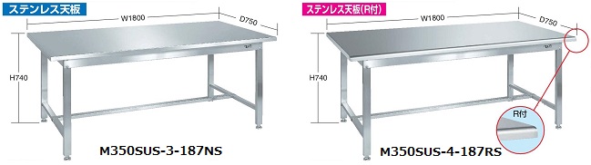 | ■特長 ●均等耐荷重300kg ●高さ(座り作業H740mm ![]() ●SUS430タイプ ※脚フレーム支柱以外はSUS430製です。 ![]() ●SUS304タイプ ![]() ■選べる作業台天板 ●ステンレス天板 耐食性を兼ね備えたオールステンレス天板です。 オールステンレス作業台は耐久性抜群で、汚れもサッとひと拭きで末永くご使用いただけます。 ![]() ●ステンレス天板(R付) 美観に優れるハイグレードステンレス天板です。 天板の前後がR付の為、美観に優れます。左右はフラットな為横に並べられます。 ![]() ■タイプ ●W900mm・W1200mm ![]() ●W1200mm・W1500mm ![]() ●W1800×D750・900mm ![]()