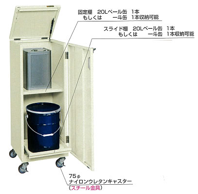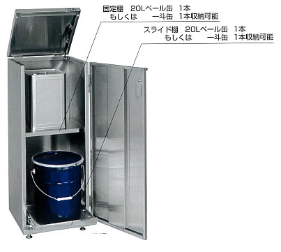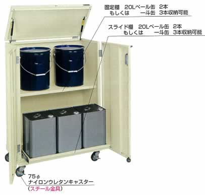 危険物の保管に最適です。 | スチール一斗缶ペール缶保管庫(固定式) 品番 M350U-ITKNES 廃番 |