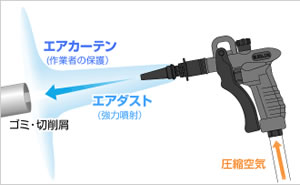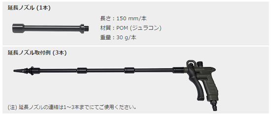 ■拡張機能(オプション) 狭所や離れた場所へのエアブロー作業をサポートします。 例)奥まった場所、立った状態での低所や高所への作業に ![]()