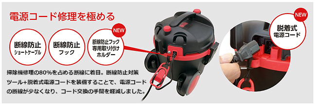 軽量、静音、強さに安全性をプラス。 強・弱無段階パワーセレクト機能に断線防止対策機能も搭載しました。 | 小型乾式オフィスクリーナー 品番 M478KWM-3D |