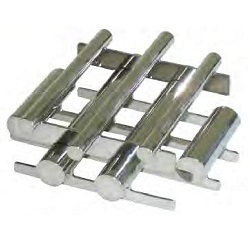 強力なマグネット棒を格子状に並べたユニットで、各種粉粒体を丸形ダクトやパイプから落下させ、その途中で除鉄する場合に取付けます。液層へ置いたり吊るしたりして除鉄回収する用途にも応用できます。 |