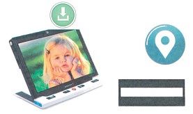 | ■特長 ●10インチの大画面モニタに高細密映像を表示します。 画面を起こすためのスタンド、使い易い機能別の操作ボタン、残像の少ないハイコントラス画像など、タブレットPCにはない見えにくい人のために設計された拡大読書器です。 ●スタンドを起こすと読書。スタンドをたたむと望遠モード。 望遠モードは約5cmから約10m離れた看板や標識まで自動でピントが合います。 モニタ側のカメラを切り替えるとミラー表示となり、メイクやヘアセットに使用することが出来ます。 ![]() ●厚さ22mm、重量約680gと薄く軽量なので、持ち運んで外出先での使用に便利です。 メニューをみたり、景色を見たり、書類に記入したり、様々なシーンでご利用いただけます。 ![]() ●ライン/マスキング、画像の保存/再生、位置表示機能など、便利な機能を多数搭載しています。 ![]() ■仕様