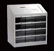 | ■特長 財布、携帯電話、鍵などの貴重品を一時的に保管・管理するセキュリティボックスです。 手荷物等の持ち込みが出来ないオフィスや工場などで、安全かつ手軽に貴重品管理が可能です。 認証方法は、暗証番号、ICカード、磁気カードなど自在に設定可能。 利用履歴も確認できるほか、PCと接続すれば各種設定や確認を簡単に行う事が出来ます。 貴重品管理担当者の負担を軽減しながら、安全性の向上にも役立ちます。 ■使用方法の設定が可能です BOX貸与・BOX共有等、状況に合わせた使用方法を設定できます。 ■PCとの接続で簡単に設定ができます 社員マスター登録・削除、履歴一覧、さらにLAN仕様(オプション)の 場合リアルタイムに対応可能です。 ■多彩な認証方法から選択できます 暗証番号、磁気カード、ICカード(Mifare、Felica)の対応が可能です。 ■140(W)×200(D)×70(H)の大容量BOX ※BLタイプのBox 鍵束や大型サイフの貴重品も管理することが可能です。 ■使用履歴を閲覧できます 必要な時に液晶表示部やオプションのジャーナルプリンタによる 印字が可能です。 ■お預かり品管理者の負担が軽減されます 業務負担の軽減はもちろん、さらに安全性が向上します。 ■各部名称