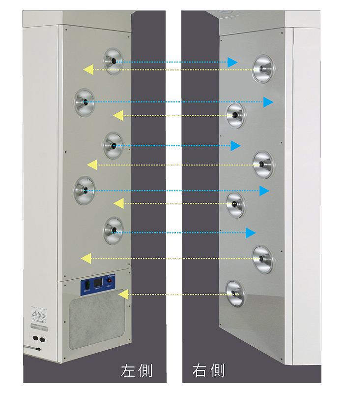 エア吹出し位置を、非対面に対応させているため、まんべんなく浴びることができます!