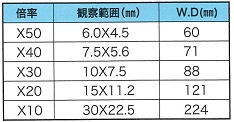 ・倍率は15インチ液晶モニタ上での倍率です ・観察範囲:観察できる最大範囲。 ・W.D.(作動距離):マイクロスコープ先端から観察物までの距離 ■仕様