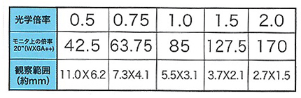 | ■M856KM-Z200C-HD2 ●メーカー従来品のTVタイプより、高画質でより綺麗な画像が得られます。 ●メーカー従来品のTVモニタタイプより「M856KM-Z200C-HD2」は約3倍、「M856KM-Z300C-FHD」は約7倍鮮明です。(メーカー比) ●「M856KM-Z200C-HD2」は光学6倍ズームを採用していますので、画面倍率x92~x552で連続して可変できます。(作動距離60mm一定) ![]() ●「M856KM-Z300C-FHD」光学4倍ズームを採用していますので、画面倍率x42.5~x170で連続して可変できます。(作動距離88mm一定) ![]() ●オプションのコンバージョンレンズ(x0.5、x2.0)を装着することにより「M856KM-Z200C-HD2」は画面倍率x46~x1104に、「M856KM-Z300C-FHD」は画面倍率x46~x1104になります。(作動距離110mmあるいは26mm一定) ●作動距離60mm一定(M856KM-Z200C-HD2) ●作動距離88mm一定(M856KM-Z300C-FHD) ●機械式可変絞り搭載 ●日本製で安心・堅牢 ■仕様