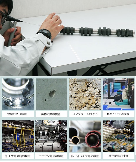 人の目が行き届かない場所や部品内部を破壊せずに点検できる Φ1mm以下の穴の中の内部検査ができる、不良や欠陥を早期に発見できます。 |