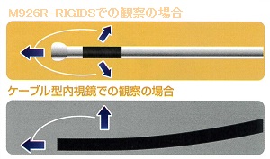 【オプション先端可動リジットケーブル M926R-RIGIDS】 ●高いところや壁の内部の点検に ●ケーブル部は硬質で曲がらない仕様 ●先端が左右2方向に可動(最大300°可動) ●先端には白色LED4灯、明るさ調整可能 ![]()