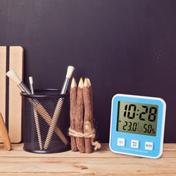 大型液晶で温度、湿度、時計のトリプル表示。 過去24時間の最高/最低温度を表示可能*(時刻も同時に表示)。 2段階の快適度表示機能つき。 |