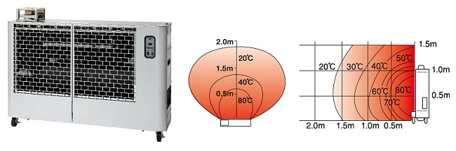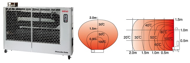 | ■使用例 工場、イベント、スポーツ会場、体育館、大型店舗の暖房に ■特長 <標準型・ハイグレード型共通> ●メーカー従来機と比べ、暖かさは同じなのに、灯油使用量が10%削減しているため省エネです。 ●運転音が57dB(強)、56dB(弱)と静かです。 ●オフタイマ標準装備 自動的に停止するオフタイマが標準装備。消し忘れ防止に役立ちます。(10、15、20、30、60、120、240、480分) ●瞬時消臭システム搭載 <ハイグレード型(MC35E-150AS、MC35E-200AS)> ●ヤケドしにくい植毛塗装 ガード前面に植毛塗装。ふれてもヤケドしにくい安心ガード ●上パネル・両サイドパネルにステンレス採用 サビにくく、ステンレスの光沢が周囲の景観と調和します。 ■タイプ ●MC35E-150SS/遠赤外線ヒーター(標準型) ![]() ![]() ●MC35E-200SS/遠赤外線ヒーター(標準型) ![]() ![]() ●MC35E-150AS/遠赤外線ヒーター(ハイグレード型) ![]() ![]() ●MC35E-200AS/遠赤外線ヒーター(ハイグレード型) ![]() ![]() ■仕様