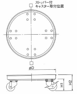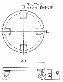 容器の移動に便利なストッパー付き運搬用台車 | ステンレスタンク用運搬台車 品番 ME22KM-30N 価格は下記をご覧下さい |