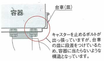 | ■特長 ●ストッパー付きキャスター台車を固定出来ます。 ●ME22KM-30N~ ME22KM-47Nのサイズは、絞り加工で軽量な皿タイプの台車です。 ●ME22KM-565N ~ ME22KM-77HNのサイズは、強度重視のアングルタイプです。 ●ストレート容器の専用台車です。 ■対応容器