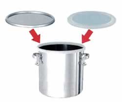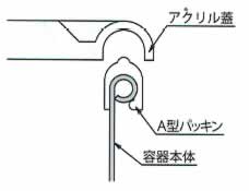 | ■特長 ●「ステンレス容器は中身が見えない」という悩みを解決しました。 ●蓋は透明で遮るものがなく、蓋を閉めたまま容器内部を全て見渡すことが出来ます。 ●ガラスに比べ透明度や耐衝撃性に優れ、破片が大きく飛び散らず安全です。 ●密閉容器のため、内容物の飛散防止や、外からのホコリの浸入を防ぎます。 ■こんな時に活躍します。 ●内部の可視性が求められる工程に ●蓋を空けずに内を確認したいとき ●匂いの強いものや外気に触れさせたくない物の保管と状態確認に ●作業時や保管時でステンレス蓋と透明蓋を使い分けたい時に ※蓋は溶剤の種類により表面に細かいひび割れが生じます。溶剤の蒸気に触れる場所には置かないでください。 ■使用イメージ ![]() ![]() ■パッキン 容器の縁に取り付けるA型パッキンが使用できます。(フタ取付用のパッキンは使用できません。) ![]() ■寸法図 ![]() ![]() ■仕様