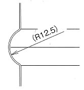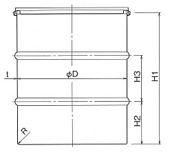 | ■リブ加工 容器自体を成形。容器の外側に向けて膨らませています。 ![]() ■寸法図 リブ加工の位置(H2、H3)は、任意に設定出来ます。 ![]() ■仕様 (mm)