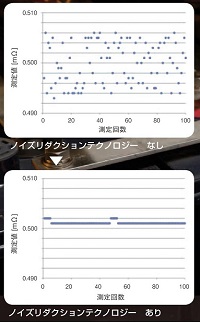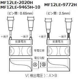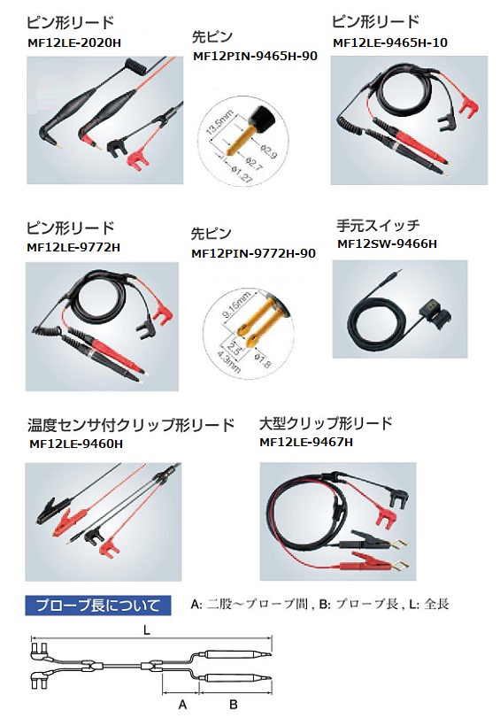 開放形(液式)鉛蓄電池やアルカリ蓄電池ではシール形鉛蓄電池に比べ内部抵抗の変化が少なく、劣化状態の判断が困難な場合があります。 ■4 端子測定における測定値について ( 測定リードの違いによる測定値への影響) 鉛蓄電池の測定など測定対象物によっては、使用する測定リードにより測定値に差が発生します。この測定値の違いは使用する4 端子測定プローブの先端形状や寸法に起因するもので、どのプローブを使った測定値もそのプローブに対する真値となります。 バッテリの劣化を抵抗値経時変化で判断する場合は、同じ寸法形状の測定リードを使用してください。 −解説− 測定値の違いは使用する測定リードの電流印加ピンと電圧検出ピンの距離( 寸法) に違いがあることから起こる物理現象です。バッテリ端子部分の抵抗がバッテリの内部抵抗に比べて相対的に大きいほど顕著に現れます。右図は鉛蓄電池を測定した場合の模式図でピン間隔の違いにより検出電圧に差が発生することを示しています。 ![]() ■オプション ![]() ![]() ![]()