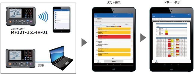 ●鉛蓄電池の劣化診断をさらにスピーディーに ●測定から保存まで最速 約2 秒、従来機種(MF12H-3554)と比較して60%短縮 ●タブレット・スマートフォンで 簡単レポート作成 |