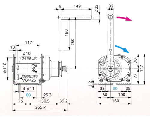 | ステンレスウインチ/品番 MF7SSW-100NF |