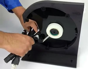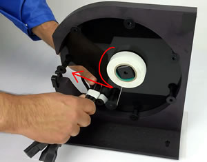 ■特長 ●ワイヤー、ケーブル、フレロールなどの結束に理想的です。 ●頑丈なアルミニウム構造 ●直径2インチ(約51mm)までの束の周りにテープを巻くことができます。 ●必要に応じて作業台に取り付けるための穴があります。 ●メンテナンスは不要 ●安全ブレードガード ■テープセット方法 (1)テープの接着面が上になるようにリールホルダーにセットします。 (2)テープをフロントローラーに通します。テープは大きなローラの下を通してから、2つの小さなローラの上を通します。 ![]() ![]() (3)テープがブレードを通過するまでテープを引き出して切断します。 ■使用方法 (1)2本の小さなローラーの間に結束物をセットします。 ![]() (2)結束物を押し下げると テープがバンドルに固着し、テープリールフレームが回転します。 (3)結束物のサイズによっては2~3回回転させる必要があります。 ![]() (4)テープを切断する場合、2つの小さなローラーの間を少し通り過ぎてから結束物を巻き戻します。 これにより、ロック機構が作動しテープがブレードの上に引き出されます。 結束物を引っ張って、テープがブレードガードを抜けて切断されるようにします。 ![]() ■仕様