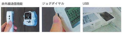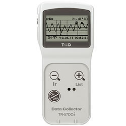 *2 : 付属のリチウム電池 LS14250 は市販されていません。交換には低温電池セット TR-00P2 をお求めください。CR2 でも代用可能ですが、使用温度範囲0~60℃、振 動が少ない場所で使用してください。また、低温環境では電池寿命警告機能は正常に動作しない場合があります。 *3 : 電池寿命は周辺温度、記録間隔、通信回数、電池性能などにより異なります。本説明は新しい電池を使用したときの標準的な動作であり、電池寿命を保証するものではありません。赤外線通信を有効に設定した場合、インバータ式照明の下では電池寿命が短くなる場合があります。 ( )内は赤外線通信有効時の電池寿命です。 *4 : 入力モジュールを接続した状態の防水性能です。入力モジュールには防水性能はありません。 *5 : 旧機種TR-50U を使用できます。 ■オプション 【TR-57DCi(データーコレクター)】 ●ハンディ 測定場所でデータ収集 赤外線通信対応 ●赤外線通信機能 データロガーを取り外す手間が不用 ●ジョグダイヤルを回す、押す、の簡単操作 ●USBでパソコンに直接データ吸い上げ ![]()