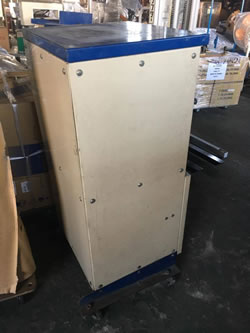 全体を板で覆われている18L缶ペール缶兼用缶プレス圧縮機。 | 中古18L缶ペール缶兼用缶プレス圧縮機 品番 PMC-50 問い合わせ番号 Z-0785-4 |
