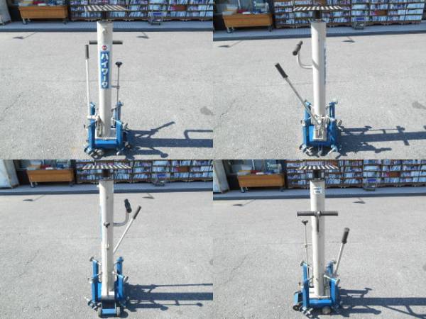 空調・電気工事等の高所作業の大きな合理化に便利な軽量・コンパクト作業リフトです。 油圧作動型。ハンドルレバーを左右に操作するとテーブルは上昇します。 移動・持ち運びも簡単です。 |