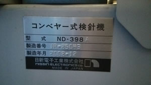 | 中古日新電子コンベア式検針機/品番 ND-398A 問い合わせ番号 Z-0788-2 |