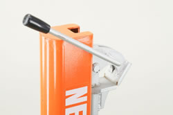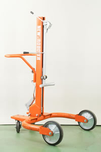 ●自重が軽くなりました ソリッドタイヤ型で35%と大幅な軽量化を実現したことでドラム缶の運搬がさらに軽快に行えます。 ●リフト操作が楽になりました 油圧ポンプの足踏操作力が、同じリフト量で従来より軽減し楽々昇降できます。 ●チャック早送り機構 パレットや台上にあるドラム缶をとる場合、チャック早送りレバーを引き上げればそのままドラム缶をチャックでき、スピーディーに作業が行えます。 ●樹脂ドラムにも使えます。 クローズタイプの樹脂ドラムもチャックできます。 |