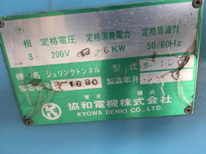 | 中古協和電機シュリンクトンネル/品番 S-450 問い合わせ番号 Z-0800-6 |