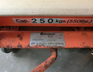 中古スギヤス手動リフータ台車 品番 BX25 問合せ番号 Z-0808-3 完売 |