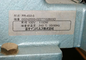 中古富士インパルス足踏み式シーラー 品番 FR-450-5 問い合わせ番号 Z-0809-6 完売 |