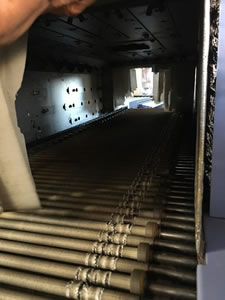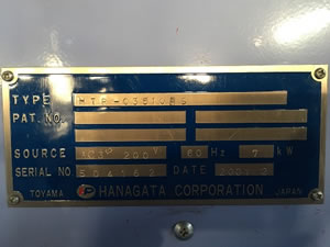 メーカー:ハナガタ モデル:HTR-03510BS 【仕様 ※取扱説明書より抜粋】 機械寸法(mm/約):L1500×W950×H1420 コンベア上面までの高さ:約830mm 通過間口(mm):W350×H200 熱風温度:max200℃ 電源:AC3相200V 60Hz |