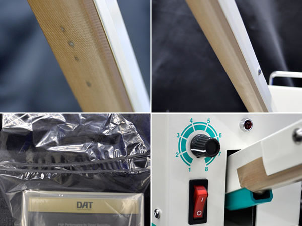 ●上部ヒーター方式採用で600㎜のシールが簡単、可能になりました。 ●滅菌パックも簡単 透明な面を上にしてシールできるので失敗がありません。 ●電源スイッチ、電流ヒューズ付で安全です。 |