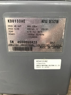 | 中古アンリツ大型金属探知機/品番 KD8113AE 問い合わせ番号 Z-0816-7 |