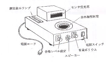 | ■特長 ●使用場所 使う場所を選びません、蜜入りセンサは特殊な電子回路技術によって、室内の照明や、屋外の太陽光の影響もほとんど受けず、外気温度の影響も殆どありません。 ●測定時間0.3秒 リンゴを赤外線照射窓の縁にある円形ゴムシートの台に乗せ、手で押すだけで測定完了です。 ●判定結果 音とランプで表示(蜜の度合いは4段階)