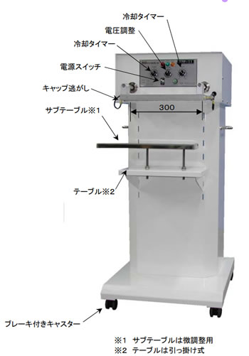 | ■特長 ●キャップ付きスタンドパックが立てた状態でシールできます。 ●フットスイッチを軽く踏むだけでシールできます ●スタンドパック用にシール機工には強力電磁石、強力トランスを使用していますので確実なシールができます。 ![]() ■仕様