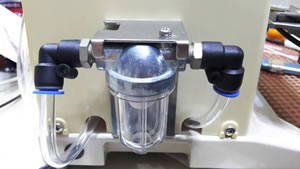 | ■簡単な操作 1「ノズル出/入ボタン」を押すと脱気ノズルが前進してきます。 2 袋をシール部にセットし、テーブルを押し下げると袋が圧着レバーに挟み込まれます。 3 「脱気開始ボタン」を押します。 4-a 「脱気設定ツマミ」で脱気時間を設定した場合 「脱気設定ツマミ」で設定した脱気時間が経過しますと電動でノズルが初期値に後退し、脱気ポンプが停止します。 4-b 「脱気設定ツマミ」を“連続”に設定した場合任意の脱気状態を目視判断いただいた時点で「ノズル出/入ボタン」 をもう一度押していただくと脱気が終了し、電動 でノズルが初期位置に後退し、脱気ポンプが停止しますので、目安脱気が可能です。 5 ノズルが後退した後、さらにテーブルを押し下げますと、設定した加熱時間でシールが行われます。 6 シール工程完了後、ノズルは自動で前進します。 ※「ノズル出/入ボタン」を押さずにノズルを脱気位置に前進させなければ、シールだけを行うことができます。 ■フィルターを標準装備 ノズルから吸い込んだ異物を溜めるフィルターを標準装備しています。 フィルターケースは容易に取り外せますので、定期的に必要なフィルターの清掃も手軽に行えます。 ■給気も可能 真空ポンプの配管のIN側とOUT側を差し替え変更することで、袋内に空気を送り込むことも可能です。 ■真空ポンプ脱気 ・内蔵の真空ポンプは、 ・排気速度:10リットル/min ・到達真空度:-58.6Kpaの真空度を得られます。 注)排気速度・到達真空度は、機械に組み込んでいない状態で計測した数値です。 到達真空度は、0torrを0paとしています。 ■多彩な用途に対応 生鮮食品をはじめ各種食品の鮮度保持、部品・衣類・化学薬品・精密機器などの酸化防止に威力を発揮します。 真空包装までの必要はないが脱気包装によって少しでも保存期間を延長させたり、中身が動かないようにしたい場合などに最適です。 さらに、ガスバリヤ性の高い包材を使って、脱酸素材を併用しますと、無酸素状態となり保存効果がさらに倍増します。 ![]() ●対面販売に 明るいデザインで軽量で店頭に置いても邪魔にならないコンパクトボディ。 お客様の面前で素早く真空パックし、手渡すことで商品のフレッシュさをアピールする・・・ ![]() ■ここに注目! ●シール幅は?:安心の10mm幅シールが可能 ●シール長さは?:長さ300mmのシールが可能 ●対応包材の厚みは?:MF1-301は最大厚0.5mmまで対応 ※様々な包材に対応できるようシール加熱時間は0.1~2.3秒の範囲で設定可能 ●脱気速度は?:脱気速度 10L/minの真空ポンプを内蔵 ※到達真空度は-58.6kpa ●万一のトラブル対応は?:脱線警報機を装備 ※ヒーターに破損や取り付けの不備があった場合、ブザー音で警報 ■用途 ●脱気包装 ・生鮮食品、珍味、野菜、果物、コーヒー豆、電子部品、半導体など ●中身が動かない程度の脱気包装 ・山菜、文具、玩具、部品クッション材など ●脱酸素材併用脱気包装 ・生菓子、茶、漢方薬、毛皮製品など ■仕様