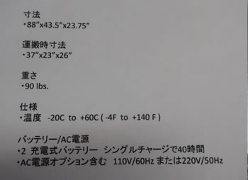 | ■特長 ●長時間バッテリー 充電式バッテリー(40時間)を使用しており、現場に電源がなくても使用可能。 バッテリは、脚部に収納されており、残量はバッテリ電圧としてKEYPADに表示されます。 ●金属の検知機能 金属の位置を3つのゾーンで検知し、どこに金属があるかを推定します。 金属を検知すると検知したゾーンのLEDが緑色から赤色に変化し警報を発します。 ●コンパクト設計 重さ40 Kg程度で一人でも持ち運びが可能。 数分で設置、分解・収納することが可能。 ●簡単組み立て式 各パネルを積み上げてゆき、パネルに付いているフックで固定するだけで完成です。 道具は一切必要ありません。 ■仕様